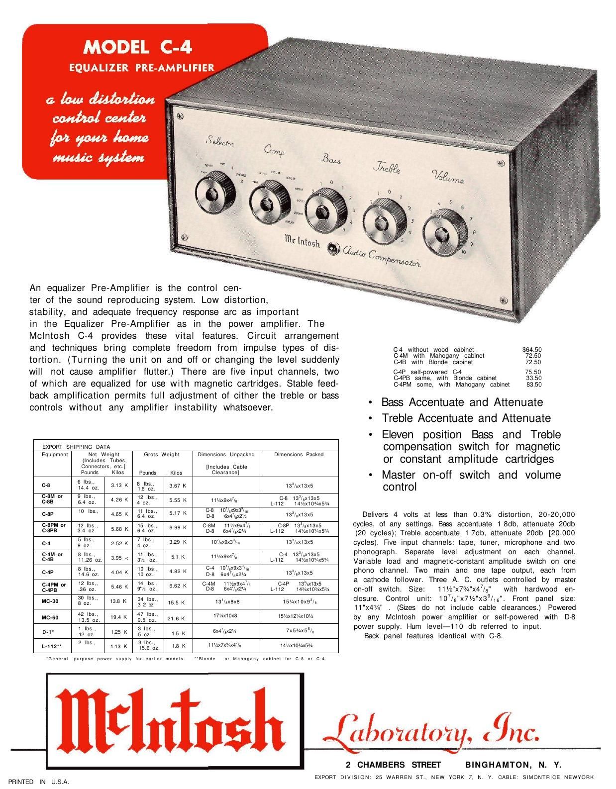 발매된 홈오디오용 진공관 프리엠프가 C-4입니다. 맥킨토시 두번째 프리엠프 작품으로 보시면 될듯하며 너무나도