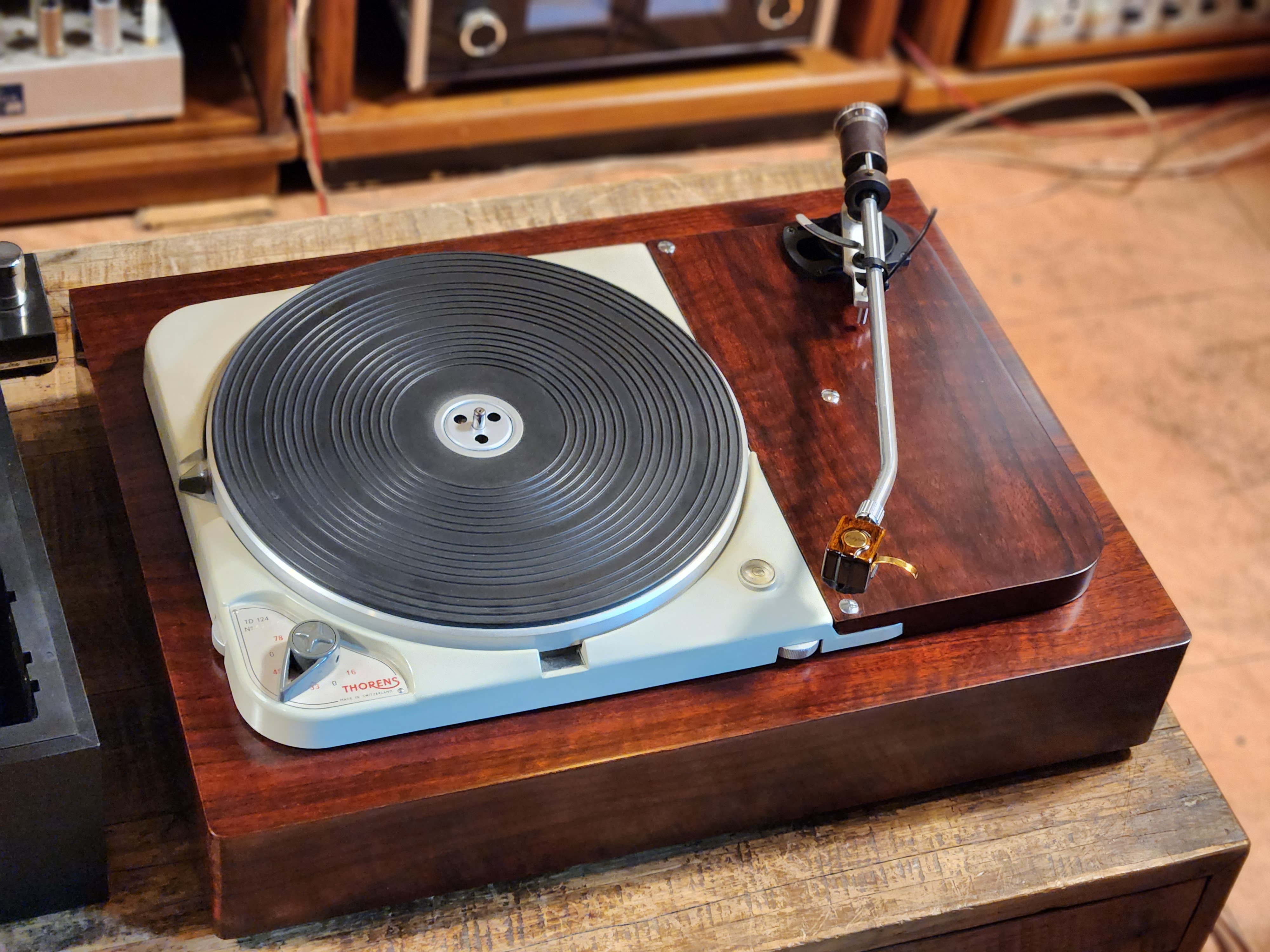 턴테이블 명가인 스위스 토렌스 Thorens 사의 구형 명기 TD-124MK1 초기형 턴테이블 입니다.