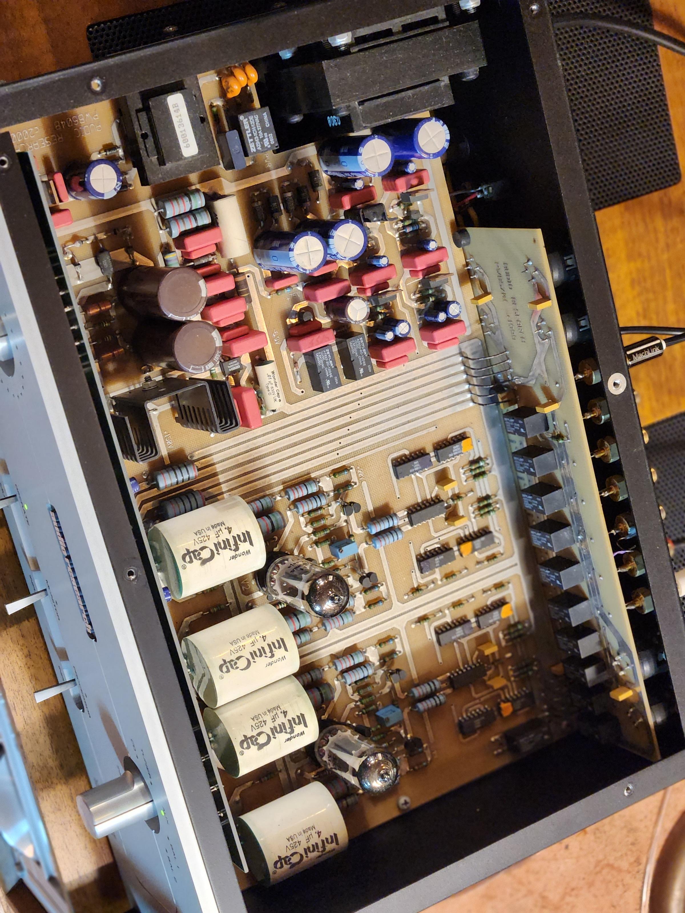 줄여서 사용하기 좋은 진공관 프리엠프 입니다. 험 없으며 모든작동 완벽합니다. 내부사진과 같이 내부상태도 아주
