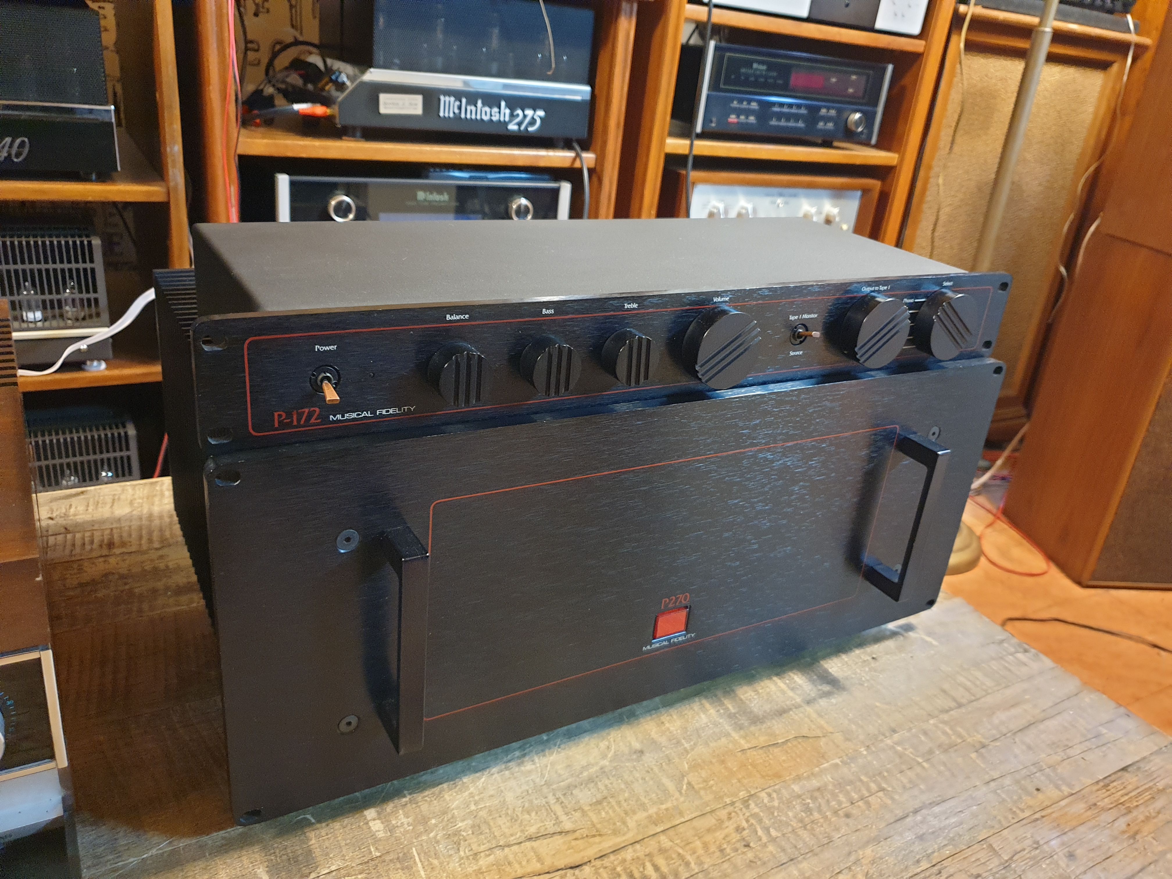 영국 MUSICAL FIDELITY 뮤지컬피델리티 사의 초기형 명기 시리즈인 P172 프리엠프와 P270 파워엠프 조합니다.