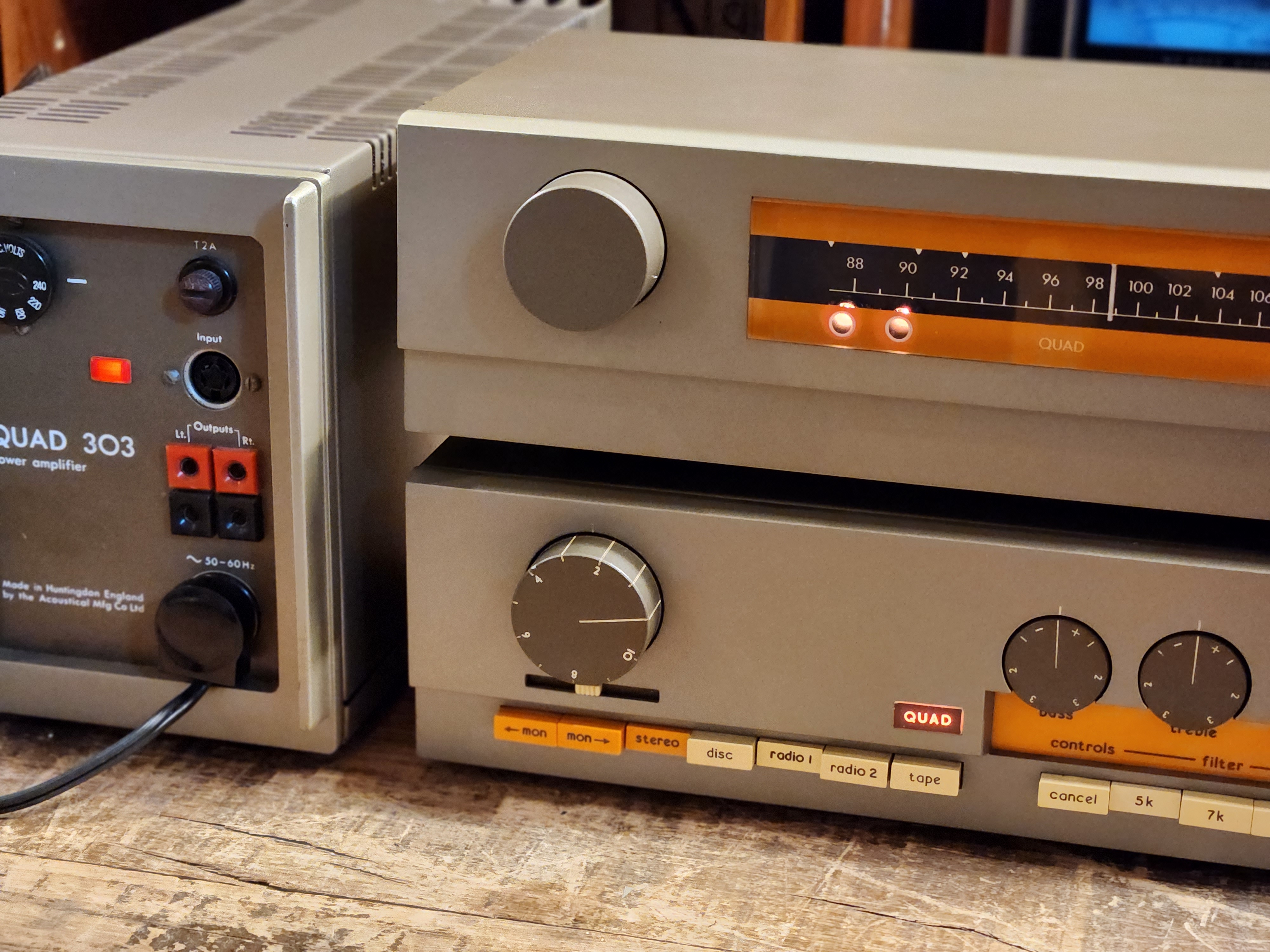 영국 쿼드 (QUAD) 사의 가정용 트렌지스터 엠프로서 QUAD 레이블에서 초기에 발매된 분리형 구성인 FM3 튜너와