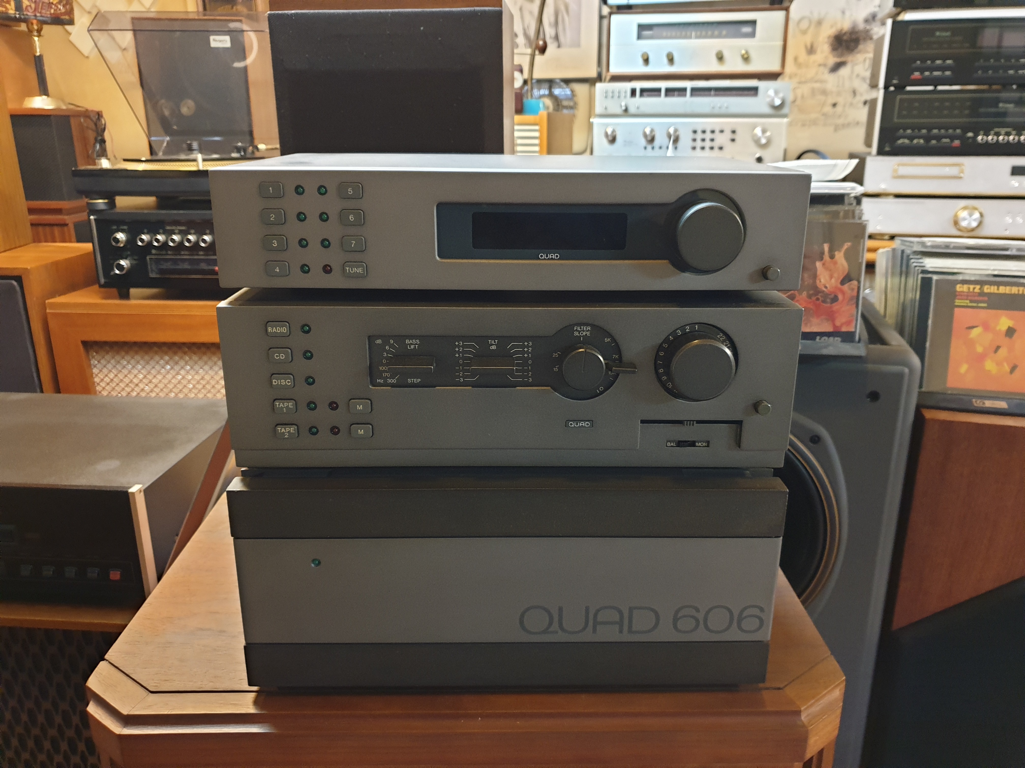 영국 QUAD 쿼드 사의 FM4튜너와 44 프리엠프 606 파워엠프 조합입니다. 쿼드 조합중 가장 힘이 좋으면서도
