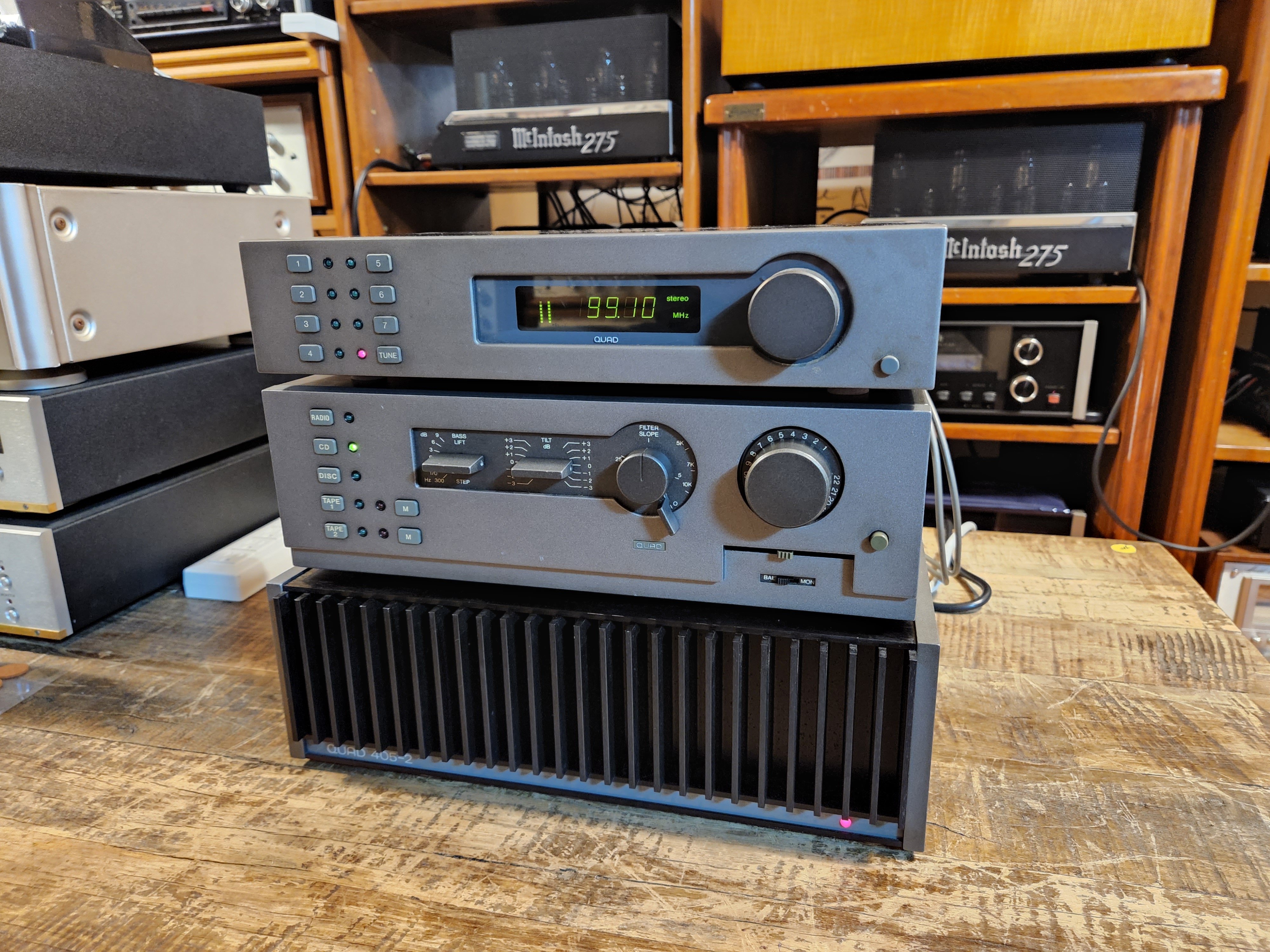 근래들어 좀처럼 깨끗한제품을 보기힘든 영국 QUAD 쿼드 사의 FM4 튜너와 44프리 405-2 파워엠프 조합입니다.