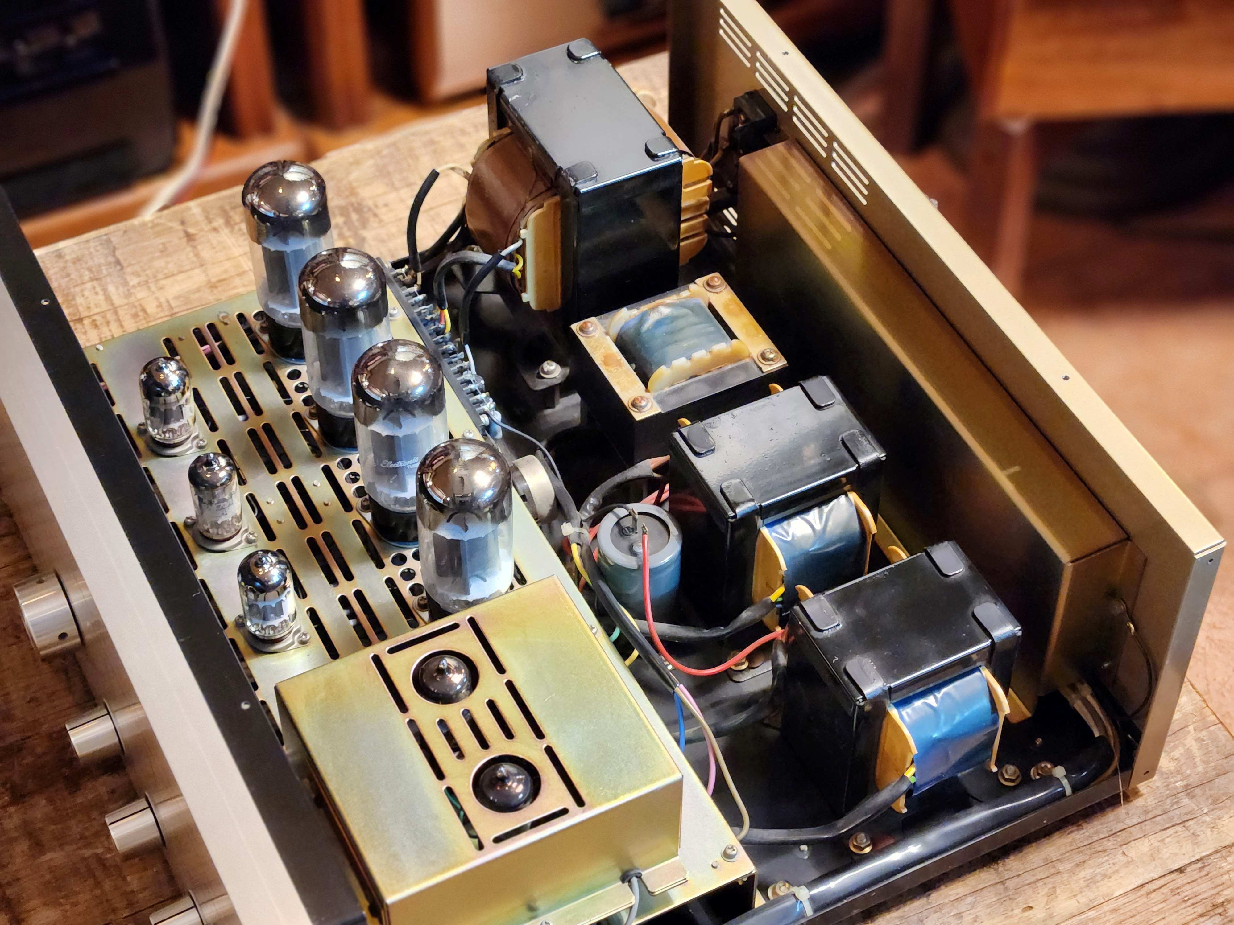 상당히 좋습니다. 사진과 같이 내/외장 상태 아주 좋으며 출력관은 보기드믄 GE6AC7 큰사이즈 출력관이 채용되어