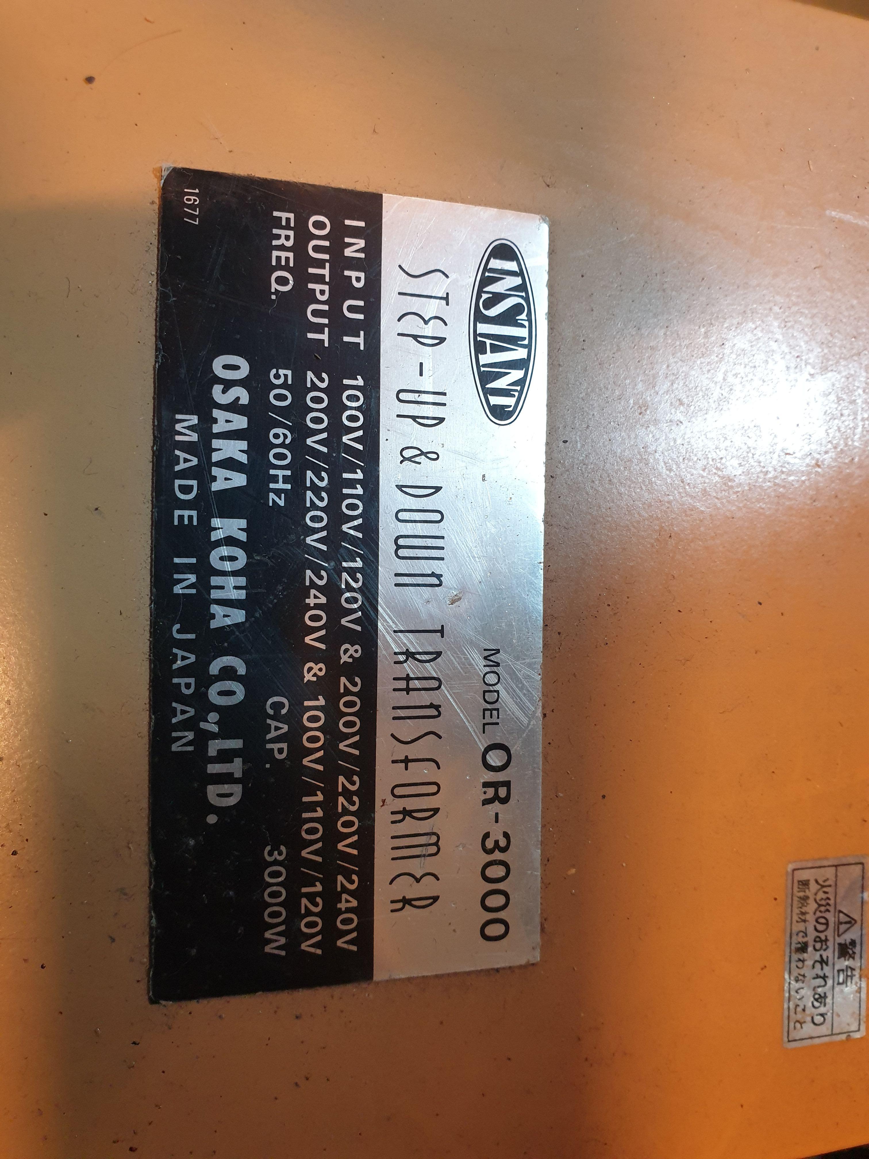 일본 INSTANT OR-3000 100V,110V,117V 전용 차폐트렌스 입니다. 3K(ending)