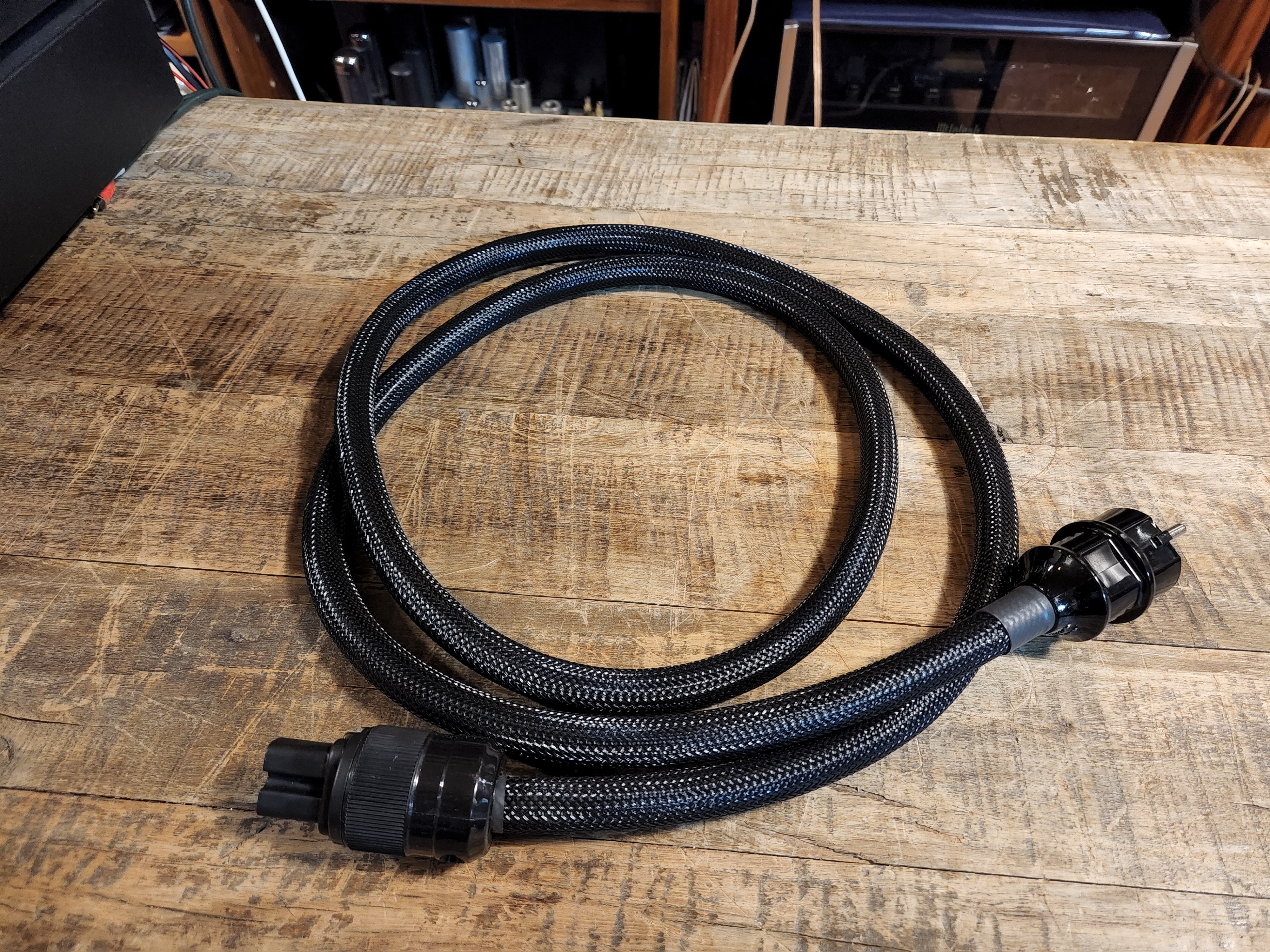 이제품은 1조만 있으며 양쪽 모두 독일제품으로 만들어진 파워케이블 입니다. 진공관 프리엠프나 tr프리엠프에