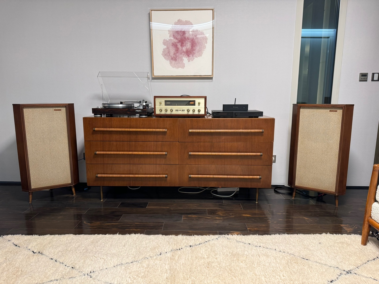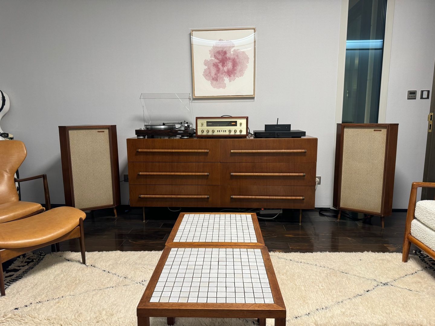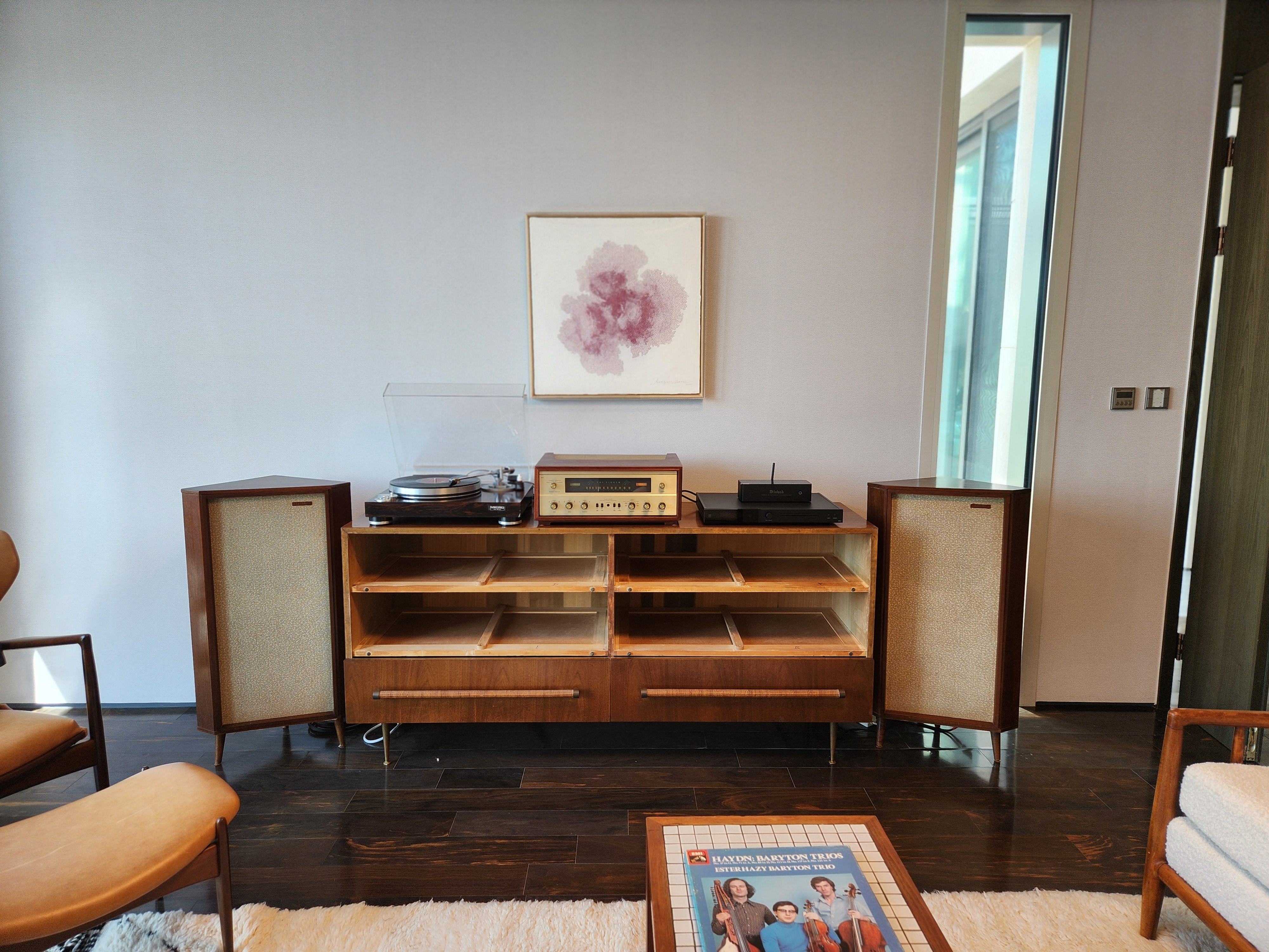 스피커는 보시다싶이 탄노이 레드모니터 빨간배꼽 체스워스 스피커를 넣어드렸어요. 작지만 고급스럽고 우아한