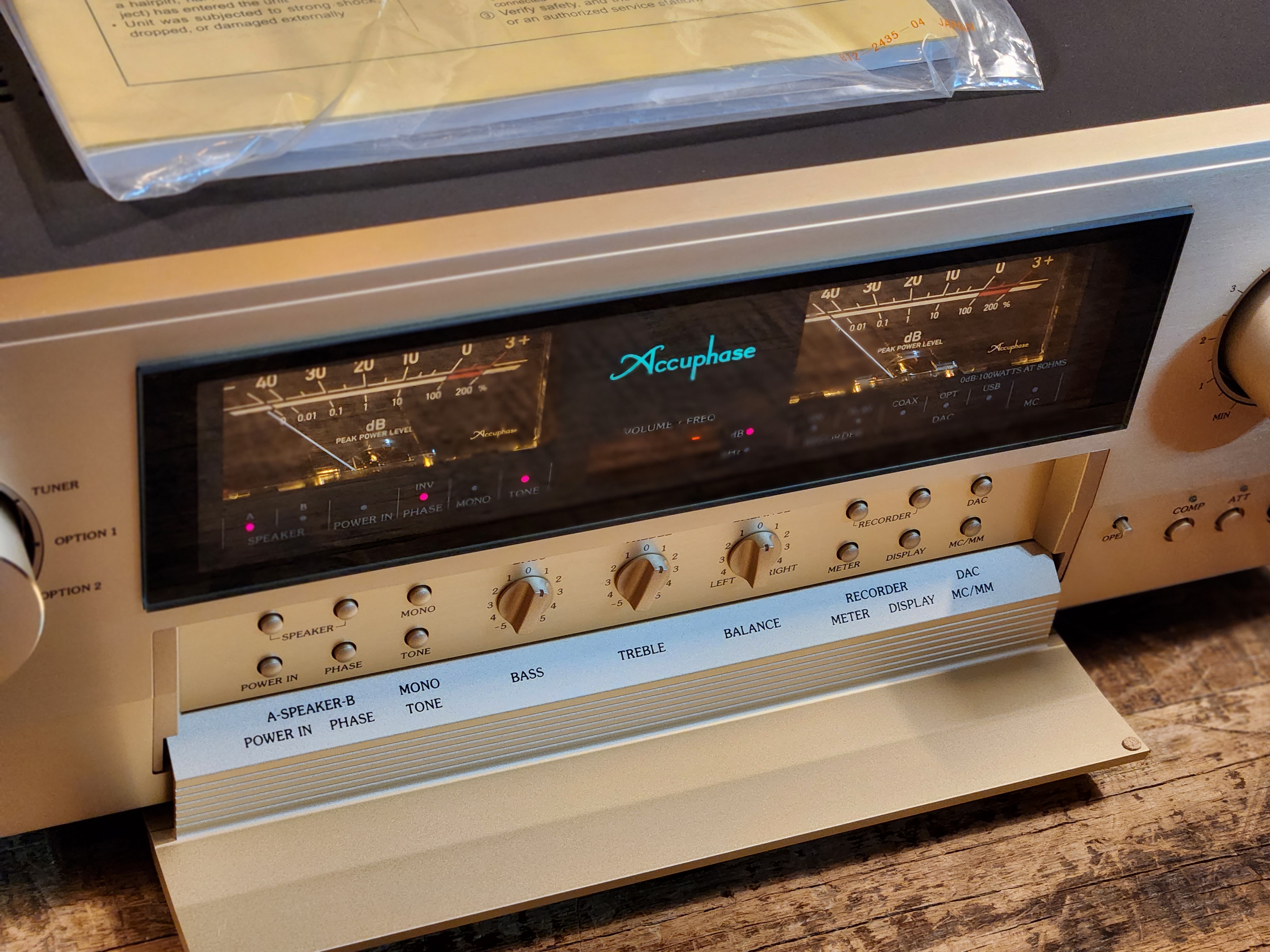 좋다는 평가가 날 정도로 인기가 좋은 인티엠프 입니다. 아큐페이즈 고유의 샴페인골드 고급적인 패널에 깔끔하고