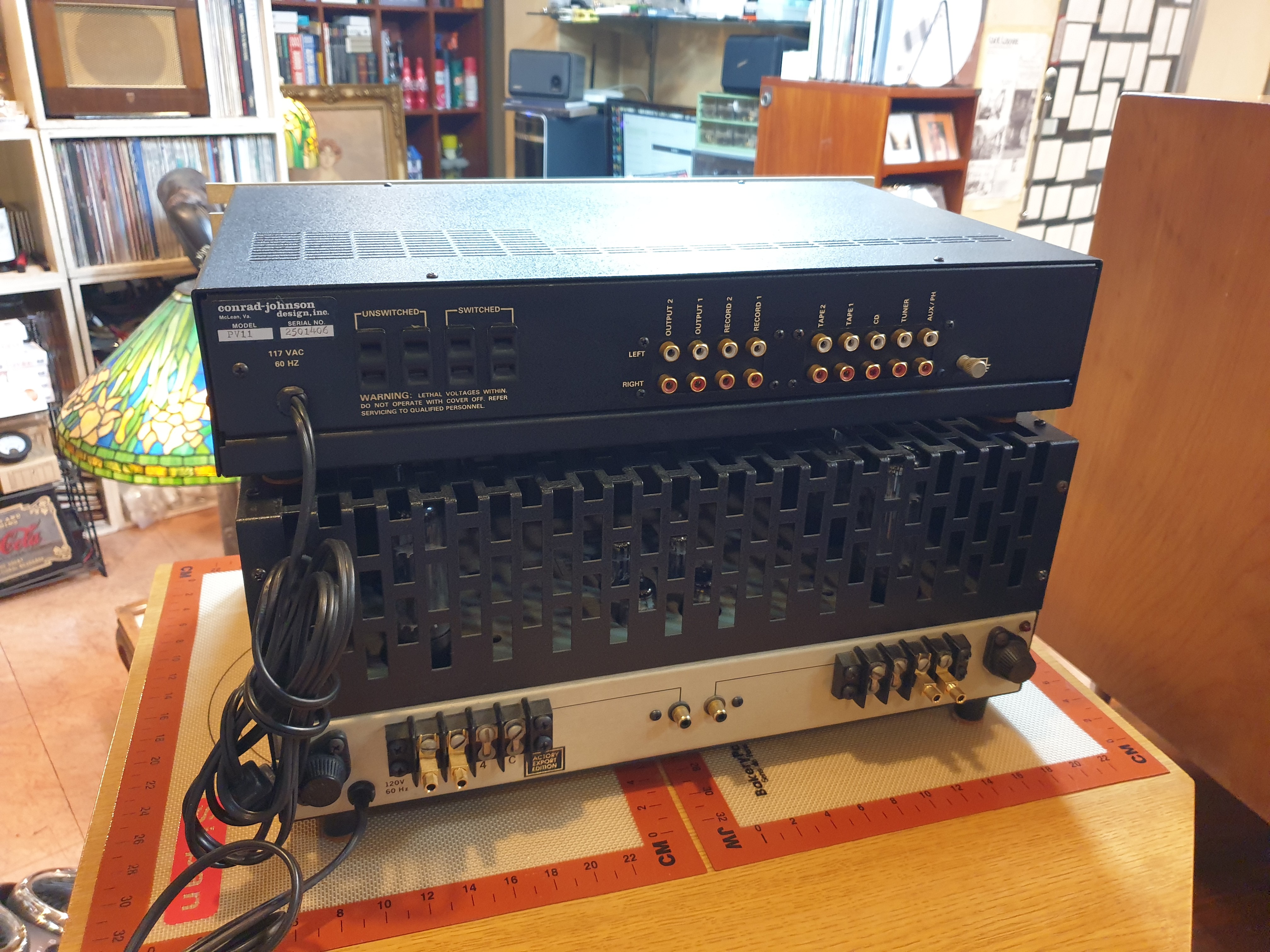 보기드믄 미국 콘라든존슨 사의 베스트셀러 PV-11 진공관 프리엠프와 MV-52 진공관 파워엠프 입니다.