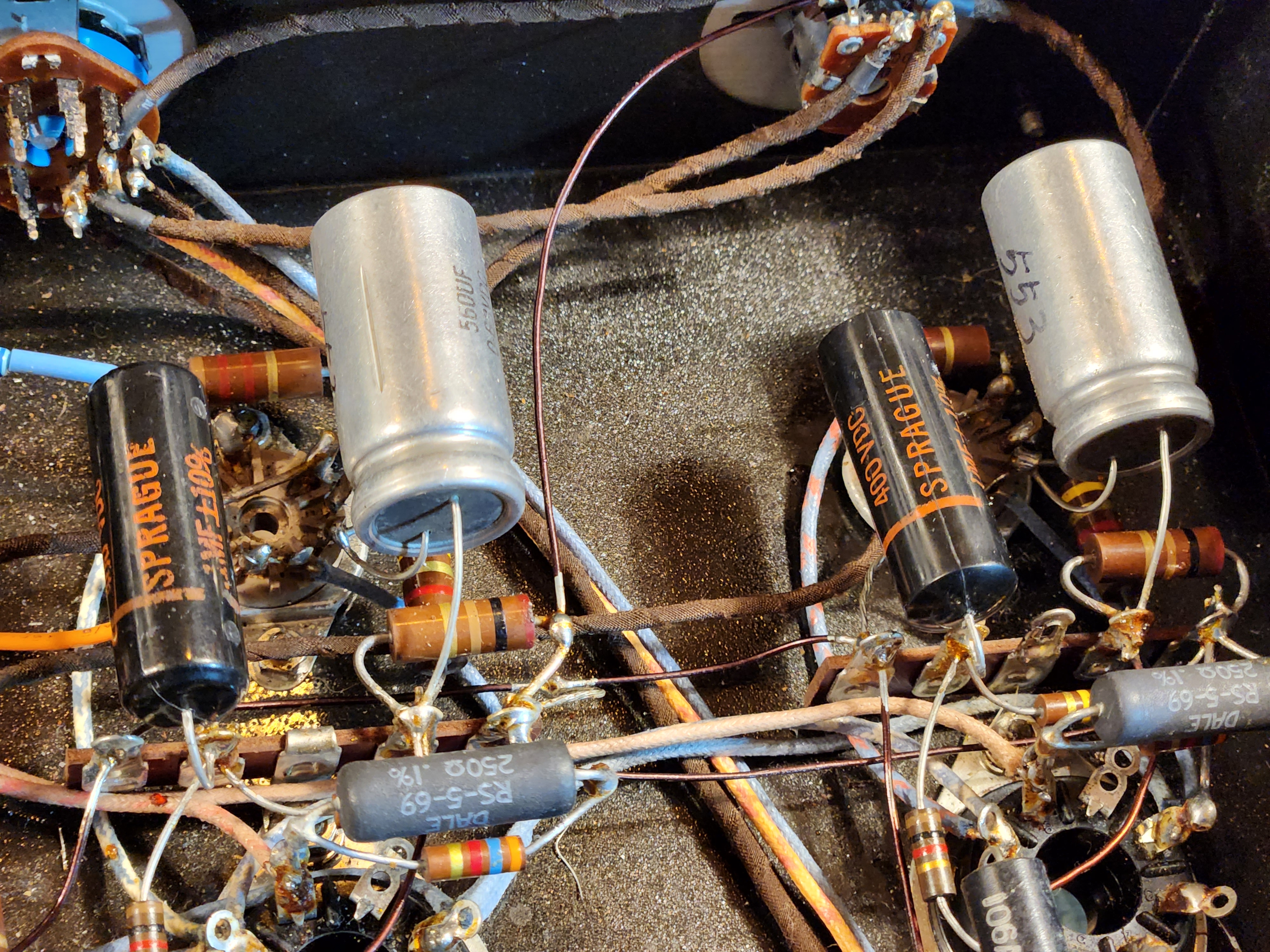 사진에 보시듯 외장과 노브 등을 가지고 내부의 빈티지 최상급 빈티지 부품 구성으로 배열해서 배선까지 빈티지