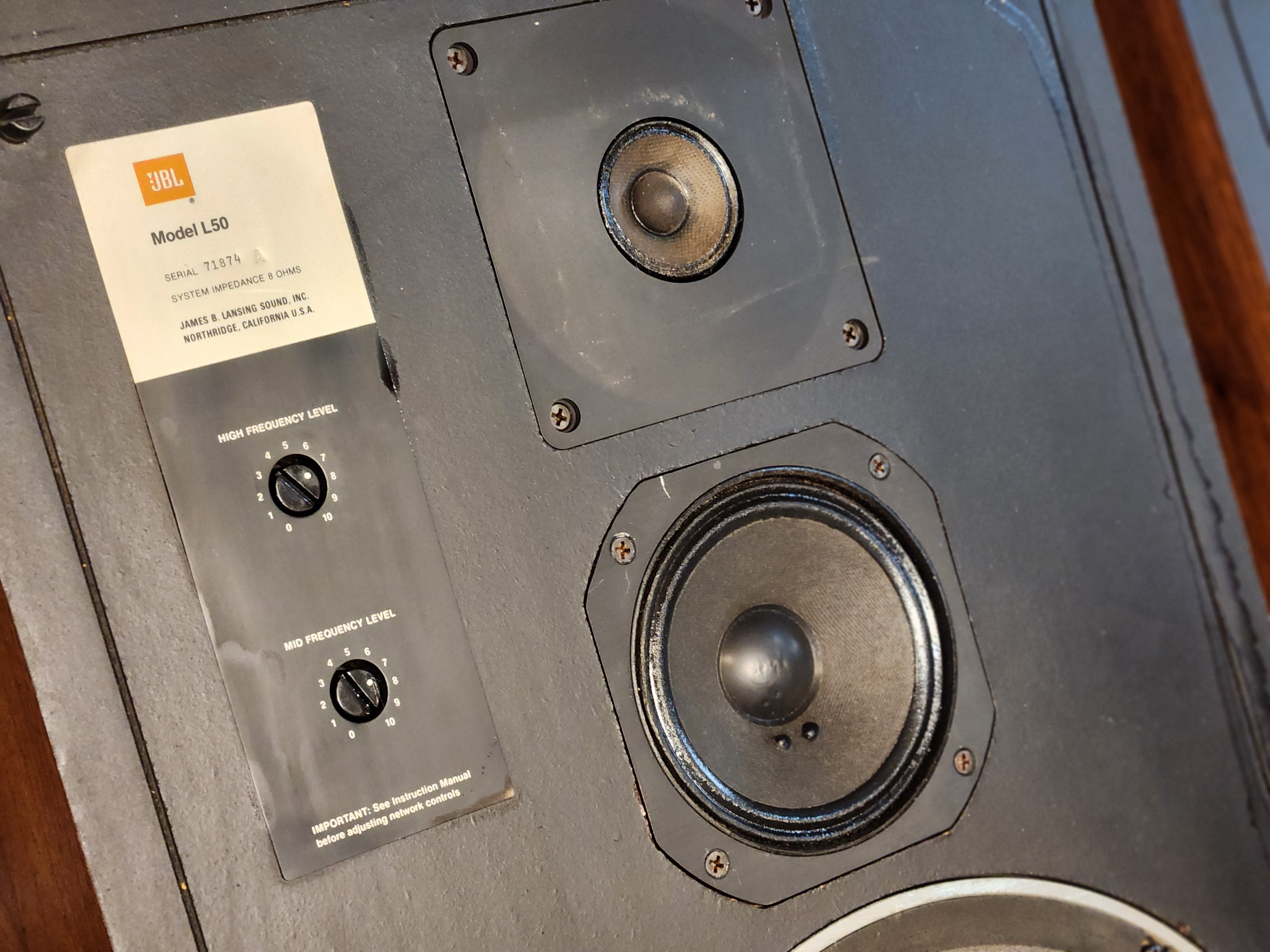 JBL 사의 빈티지 베스트셀러 모델인 L50 스피커 입니다. 3way 를 사용한 모델로서 우퍼는 알니코유닛을 채용해