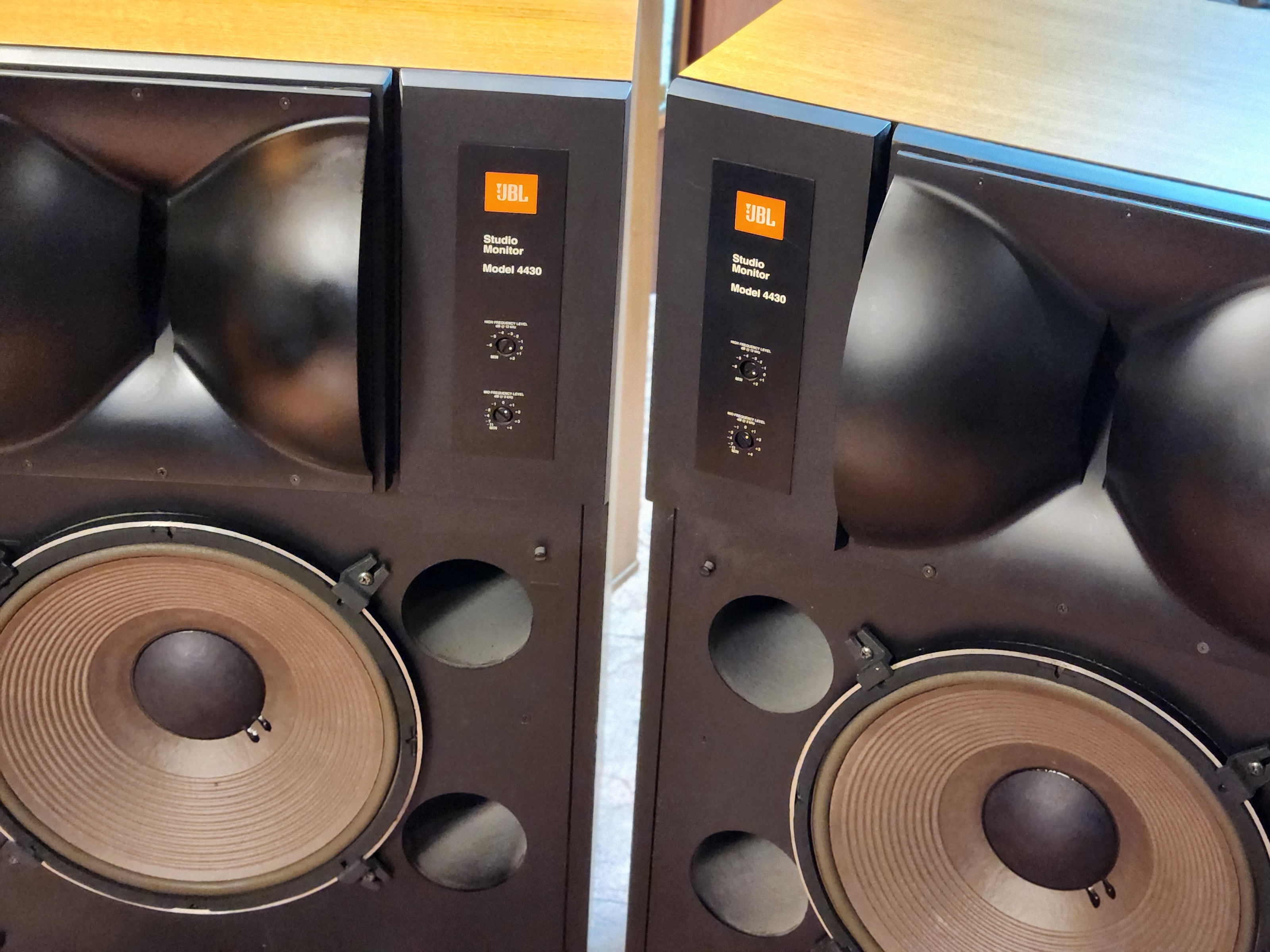 4425스피커는 빽그라이드 드라이버 작은것이 채용되었으며 4430의 드라이버는 진동판이 보여지는 JBL 구형 대형기들에