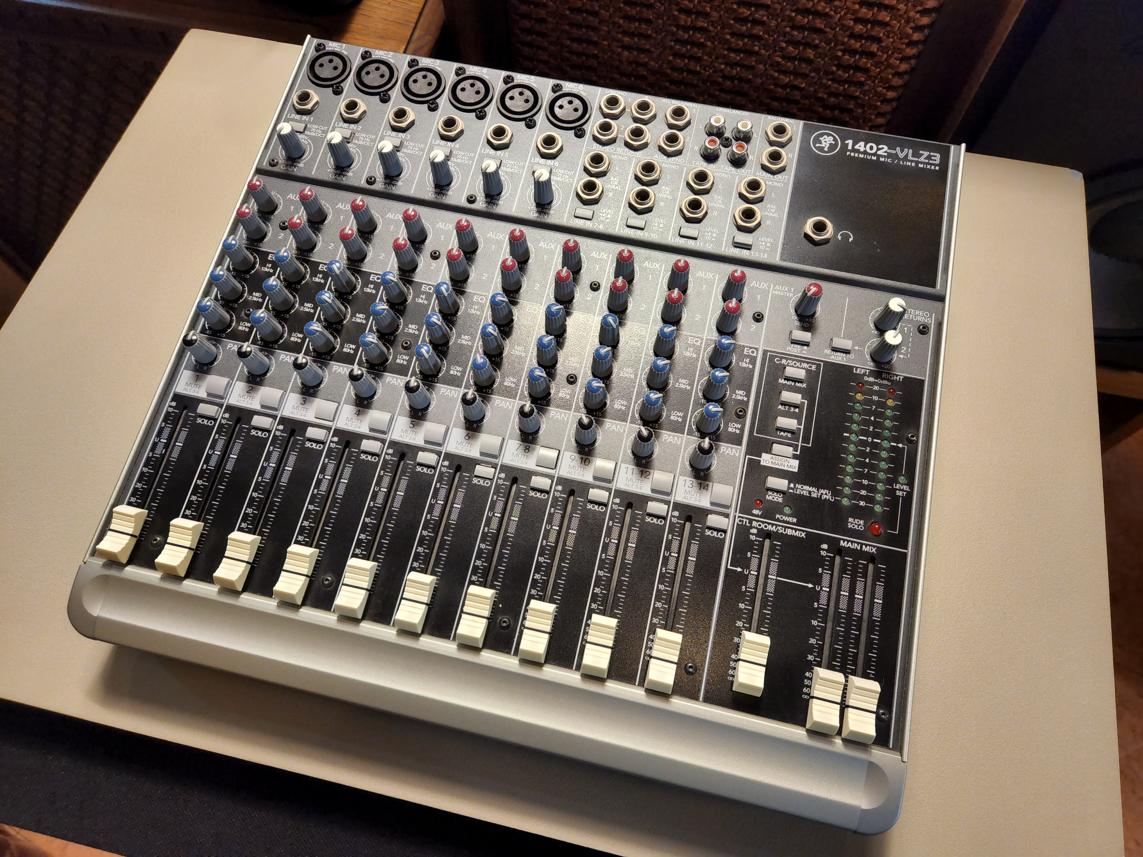 MACKIE 맥키 사의 1402-VLZ3 라인전용 믹서 입니다. 가성비 끝판왕이라고 평가받는 제품으로서 포노단이 없는