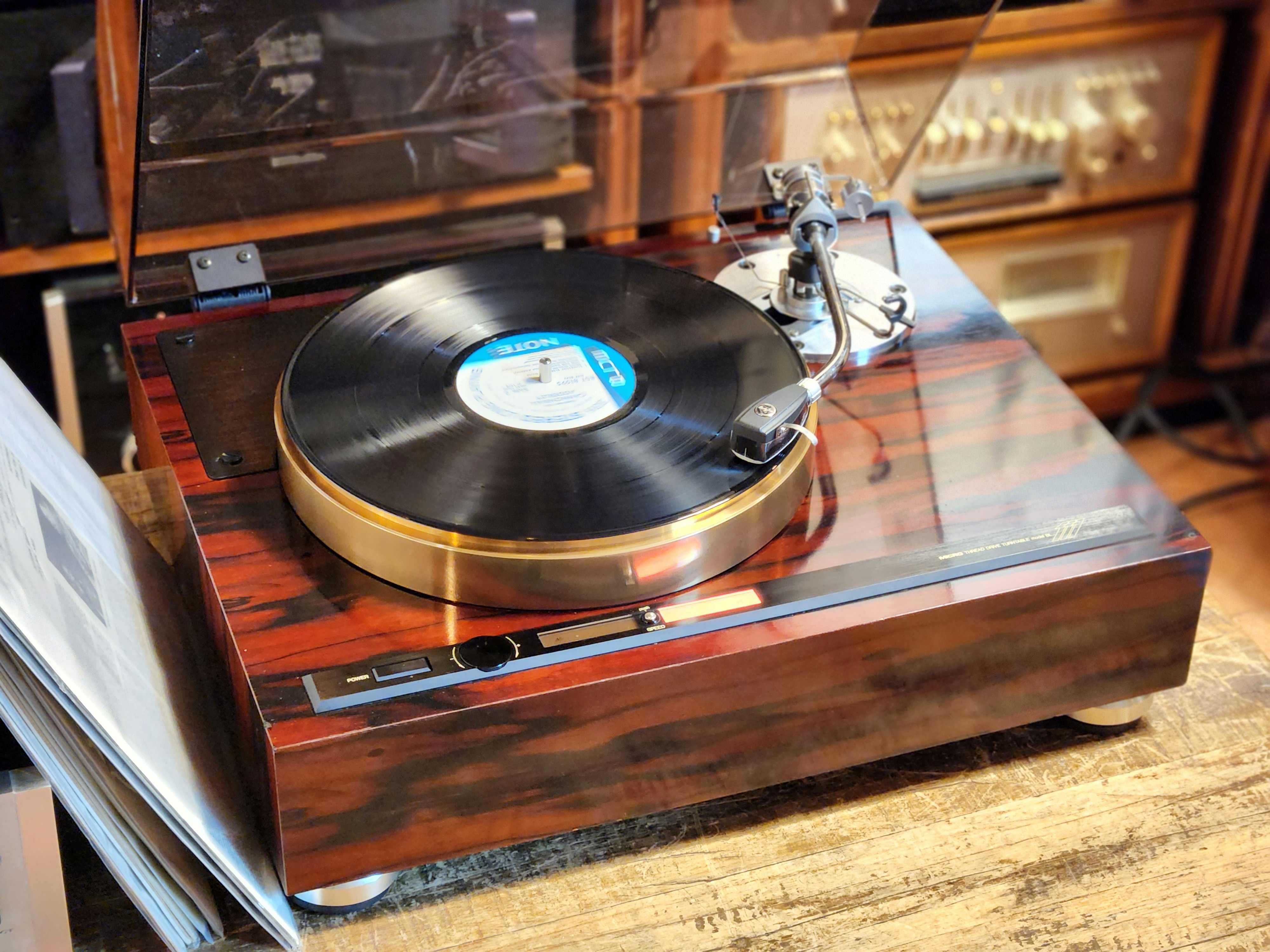 Micro Seiki BL-111은 범용 톤암 마운팅 베이스가 있는 스레드 드라이브 턴테이블입니다.