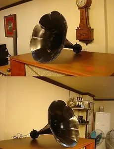 웨스턴 3A 빈티지 모노 혼 1개 입니다.(eNDING) 스테레오 사운드 웨스턴 특별기획 발간호를 보면 등재되는 웨스턴 3W 모노혼 입니다. 미국에서 들여온 제품으로서 모노1개만 들어온 제품이며 드라이버는 달려있지만. 옛날 웨스턴 혼은 제짝 파워서플라이드 가 없으면 사용이 불가하므로 DCR체크시 20000 이상이 나와 소리체크가 힘든 제품입니다. 이제품은 드라이버 보다 혼을 타 드라이버에 삽입시켜 일본의 많은 동호인들이 쓰는것 으로 알고 있습니다만. 모노이기에 한짝을 더구해서 사용 해야 합니다. 상태는 우수하며 웨스턴 오리지널 선재도 드라이버에 달려있습니다. 2009. 1. 19.